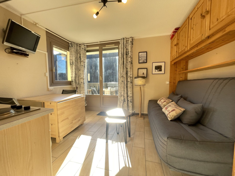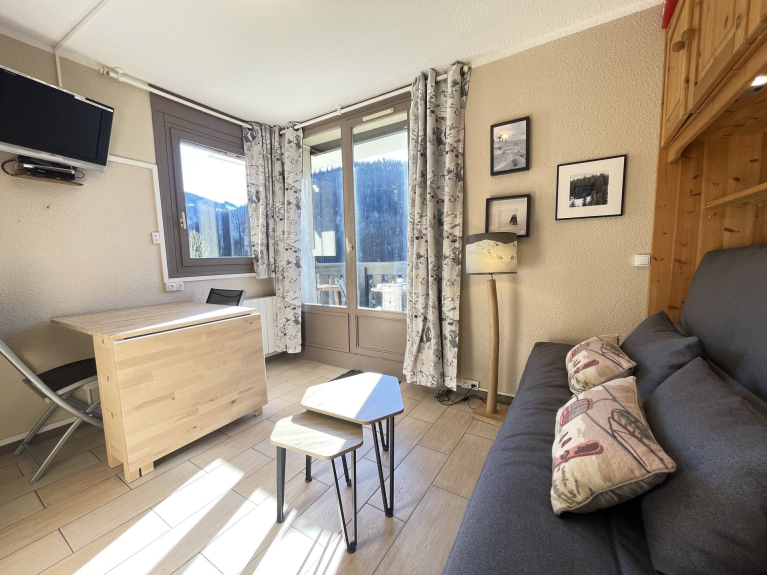 Studio pour quatre personnes situé dans la résidence des Adrelles offrant une vue sur le Mont Charvin et la vallée. Situé dans le village de Notre Dame de Bellecombe, toutes les commodités sont accessibles à pieds, l'aire de jeux est à 100m ainsi que l'arrêt de ski bus.