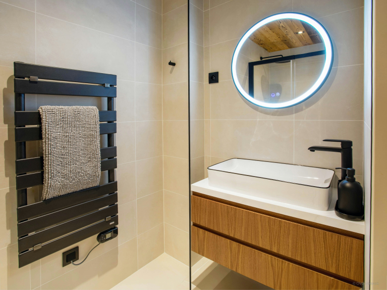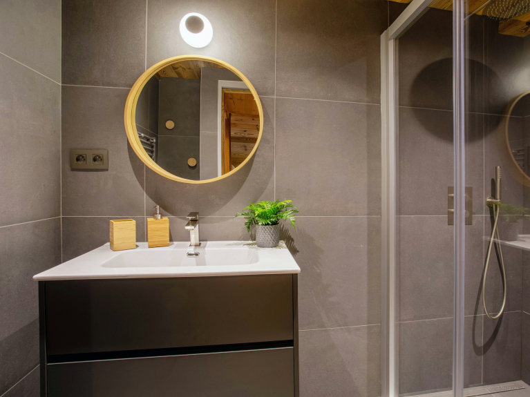 Le logement occupe principalement le premier étage du bâtiment. Mais son point fort est son sous-sol, qui compte un local à skis et un sauna. À la fin d’une journée sur les pistes, vous pourrez ainsi vous défaire de votre tenue d’extérieur et vous détendre un moment dans le sauna avant le dîner.
