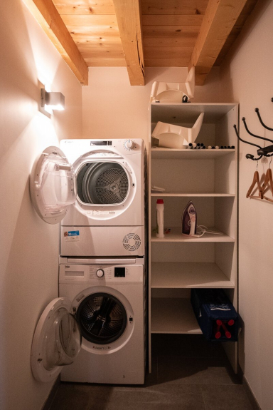 Le chalet dispose également d’une buanderie (lave-linge et sèche-linge) et d’un local pour votre matériel de ski avec un sèche chaussure.