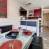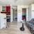 Cuisine équipée : réfrigérateur, 2 plaques à induction, hotte, four combiné (micro-ondes et traditionnel), lave-vaisselle, cafetière Nespresso, bouilloire et grille-pain électriques.