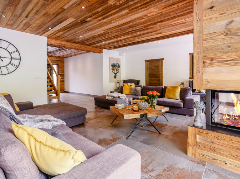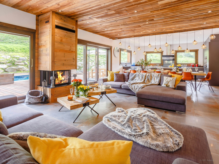 L’espace ne manque pas au Chalet Woodman ! La vaste pièce de vie, baignée de lumière grâce à ses grandes baies vitrées, s’ouvre sur la terrasse. Vous pourrez vous retrouver confortablement installés dans les grands canapés, parfaits pour partager des moments conviviaux en famille ou entre amis. La cuisine moderne et élégante, entièrement équipée, ainsi que la buanderie, ajoutent au confort du chalet.
