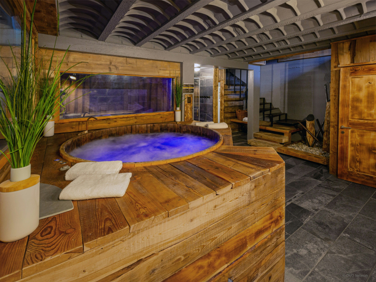 Avec un hammam et un bain nordique intérieur, l’espace bien-être est une des caractéristiques principales du Chalet Melussac. Le local à skis est très fonctionnel, grâce à un sèche-chaussures chauffant et un accès direct depuis le jardin, pour que vous puissiez vous mettre à l’aise dès votre arrivée.