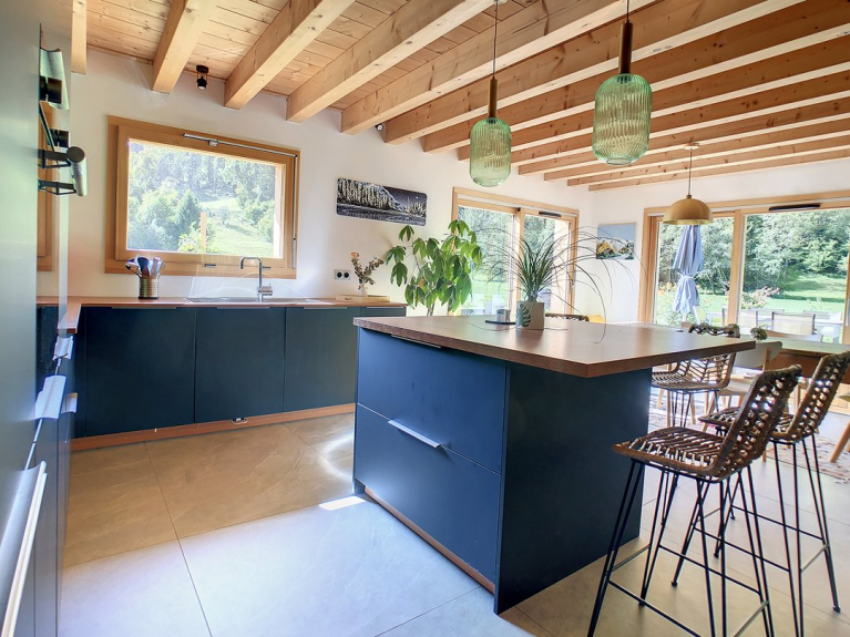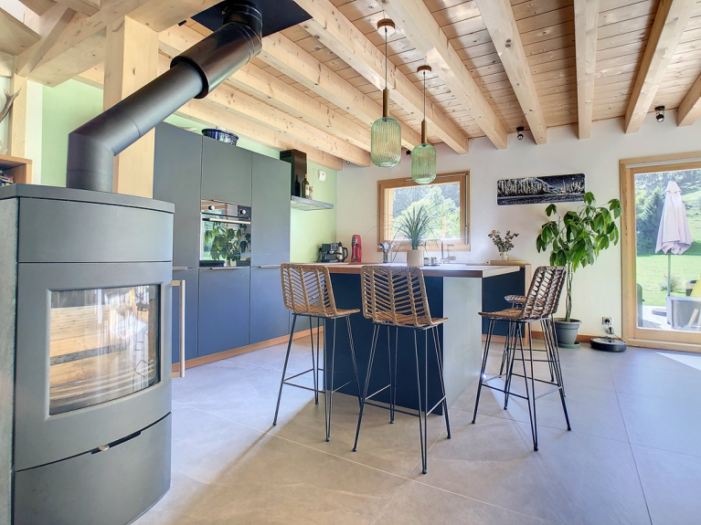 La cuisine est équipée de plaques de cuisson, d’une hotte, d’un réfrigérateur, d’un congélateur, d’un four, d’un micro-onde, d’un lave-vaisselle, d’une machine à café, d’un service à raclette pour vos soirées d’hiver.