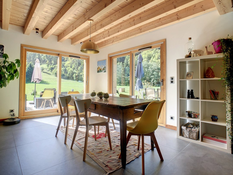 Demi-chalet avec de belles prestations pour vos vacances !! Dans un endroit bucolique et au calme, avec une vue exceptionnelle sur les Dômes de Miage, ce superbe chalet comprenant au rez-de-jardin une belle cuisine entièrement équipée ouverte sur un salon-séjour chaleureux et accès à une magnifique terrasse, un WC indépendant, une buanderie et un garage.