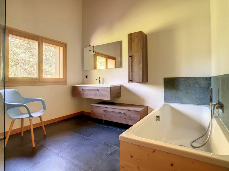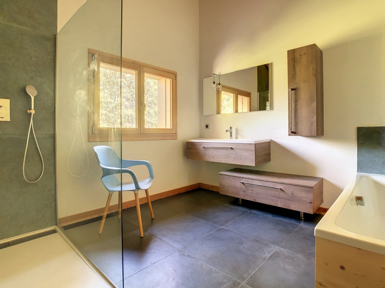 A l’étage, vous trouverez 3 chambres, un dressing, une salle d’eau avec douche et baignoire, et un WC indépendant.
