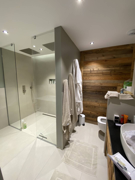 Au rez-de-chaussée vous trouverez une superbe chambre avec télévision, dressing, deux douches italiennes, une baignoire et un WC, deux autres chambres avec chacune une salle d’eau et la télévision, un WC indépendant ainsi qu'une buanderie qui vous permettra de voyager léger.
