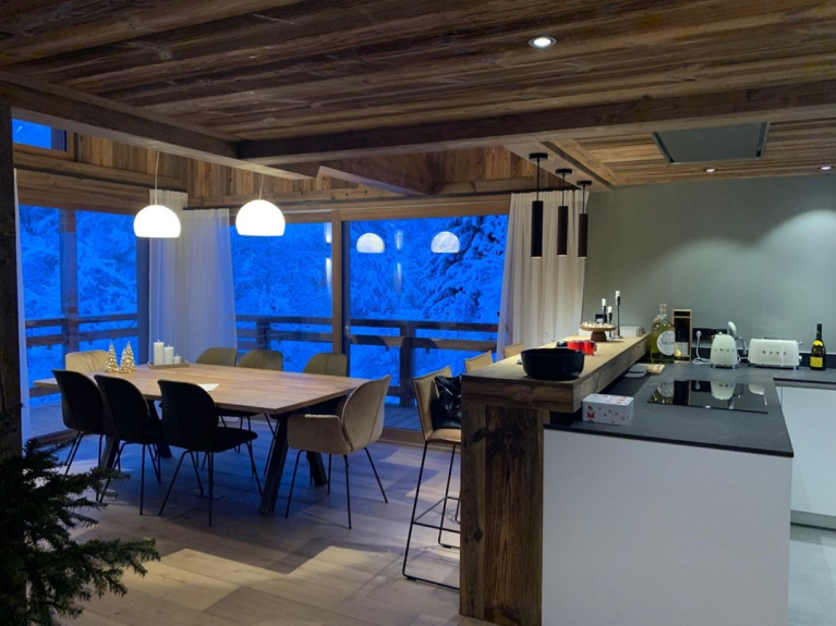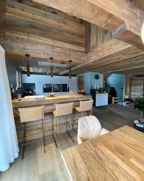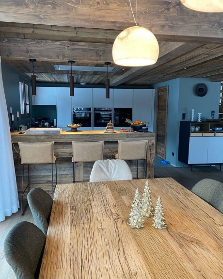La cuisine est équipée de plaques de cuisson, d’une hotte, d’un réfrigérateur, d’un congélateur, d’un four, d’un micro-onde, d’un lave-vaisselle, d’une machine à café, d’un service à raclette pour vos soirées d’hiver.
