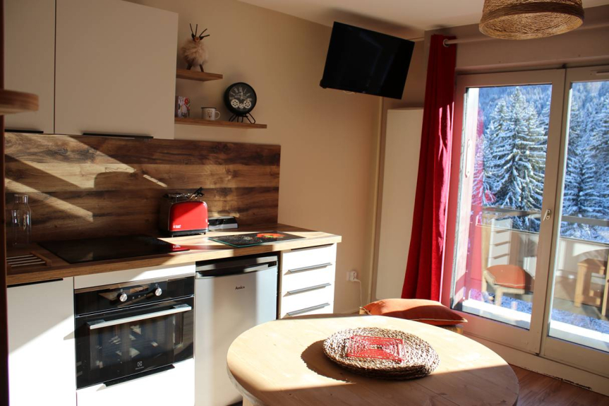 Une navette dessert le lotissement été comme hiver, l'arrêt se trouve à 500 m de l'appartement.