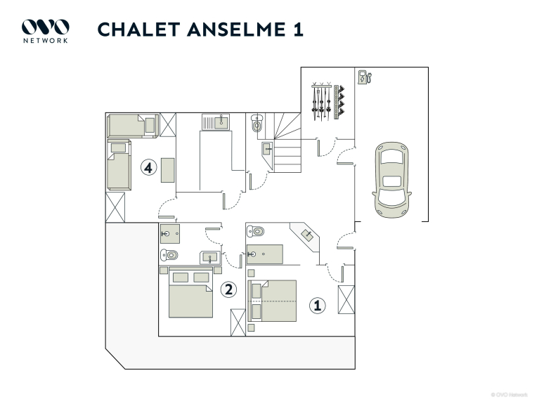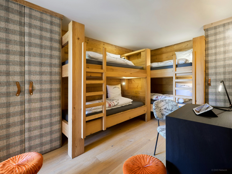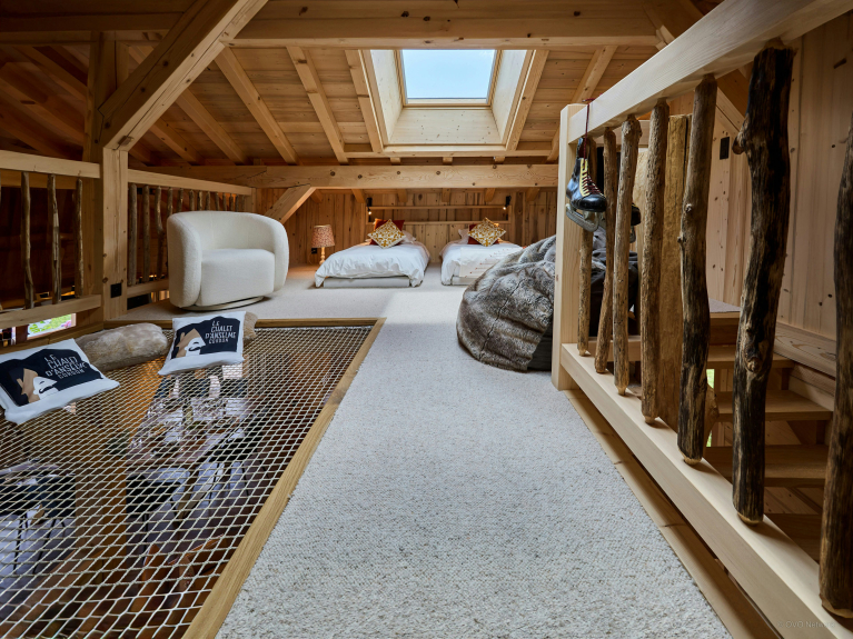 Le Chalet Anselme est une propriété de deux étages pour 10 vacanciers, avec quatre chambres, quatre salles de bains, et une mezzanine / salle de jeux.