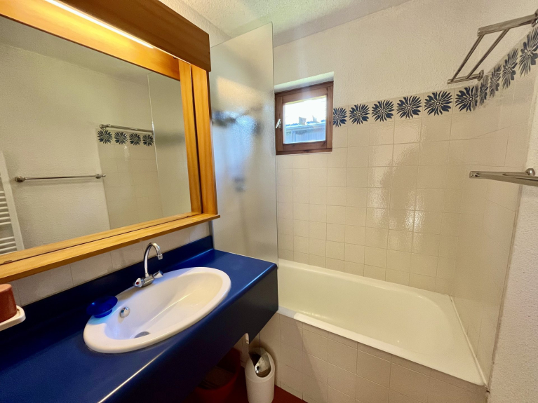 - Salle de bains avec baignoire.
