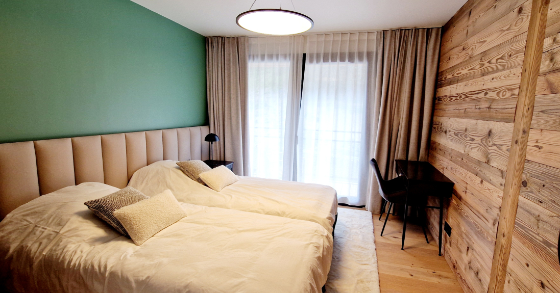 Une chambre avec 2 lits jumeaux en 80cm, accès direct sur le balcon / placards