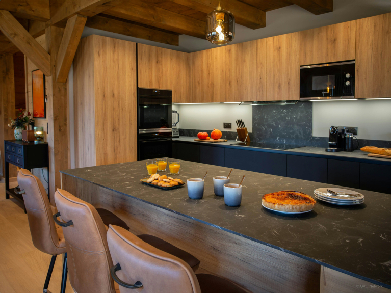 Le Chalet La Cachette est un logement moderne de trois étages pour 10 vacanciers, comptant cinq chambres et quatre salles de bains.