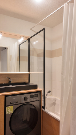 Salle de bain : baignoire, lavabo - wc indépendant - lave linge