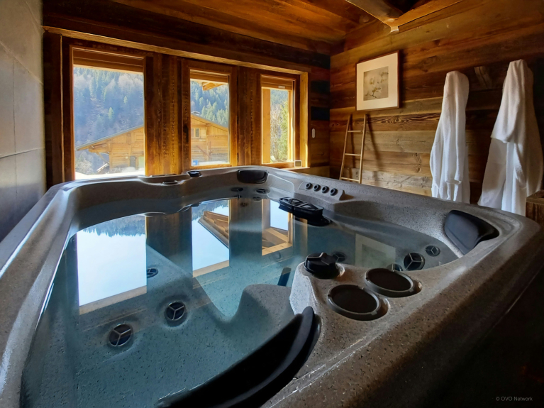 À ce niveau se trouve également la première chambre double, qui bénéficie d’une salle de douche privée. Vous trouverez également une salle de bains avec baignoire balnéo, une seconde salle de douche, deux toilettes séparées, et une buanderie avec lave-linge et sèche-linge. Un espace dédié au bien être avec jacuzzi et sauna vous permettra de profiter de moments de détente.