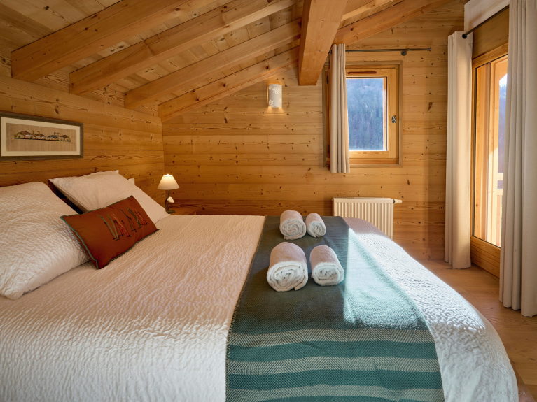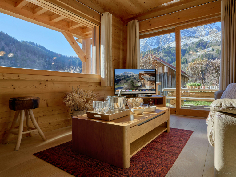 Le Chalet La Canopée domine un quartier excentré de La Giettaz. Ses deux étages comptent cinq chambres et quatre salles de bains, pour une capacité de 10 personnes.