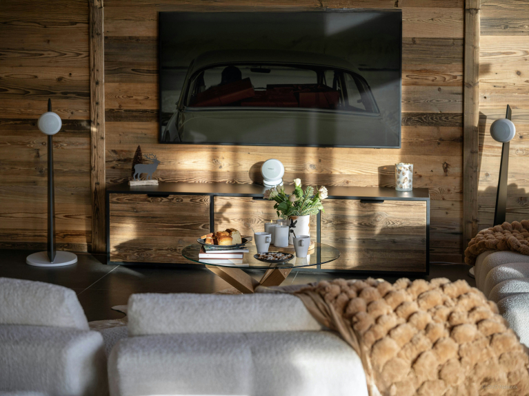 Au rez-de-chaussée se trouvent deux chambres doubles et un dortoir avec deux lits superposés. Chacune de ces chambres dispose d'une élégante salle de douche attenante, et deux d'entre elles ouvrent sur une terrasse, où vous trouverez le jacuzzi et des chaises longues. Les enfants bénéficieront de leur propre salle de jeux, équipée d’un vidéoprojecteur, où ils pourront jouer à l'ordinateur ou faire une session de karaoké. Cet étage compte également une buanderie et un local à skis avec sèche-chaussures chauffant.