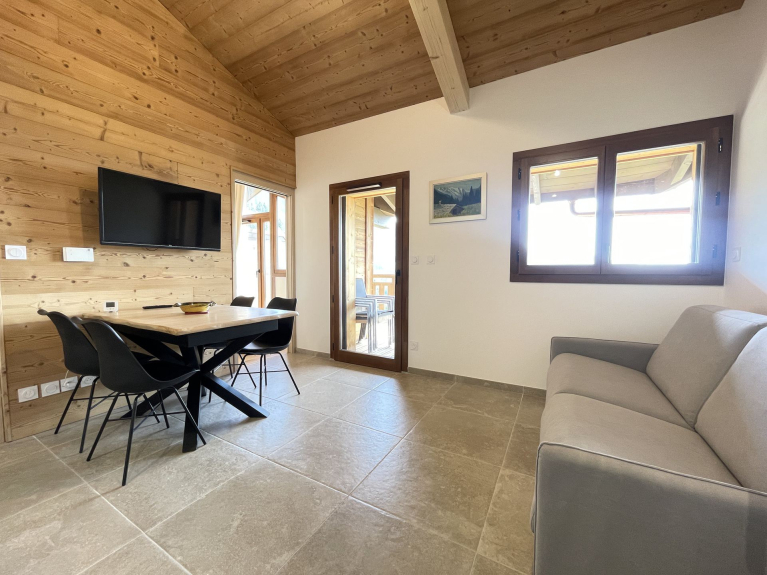 Ce bel appartement neuf d'environ 35 m² se situe à proximité de la place du cernix. Il dispose d'une terrasse meublée orientée Sud, idéale pour savourer des déjeuners en plein air. Il est conçu pour accueillir quatre personnes , idéalement 2 adultes et 2 enfants. Situé au 3ème étage, l'appartement offre une vue dégagée sans vis à vis sur la chaine des Aravis (résidence avec ascenseur). La résidence Canopée, composée de 2 bâtiments, est située à environ 500m à pied des commerces de proximité et du télésiège du Cernix. Les vacanciers apprécieront également la navette gratuite située à seulement 100 mètres, facilitant l?accès aux pistes.