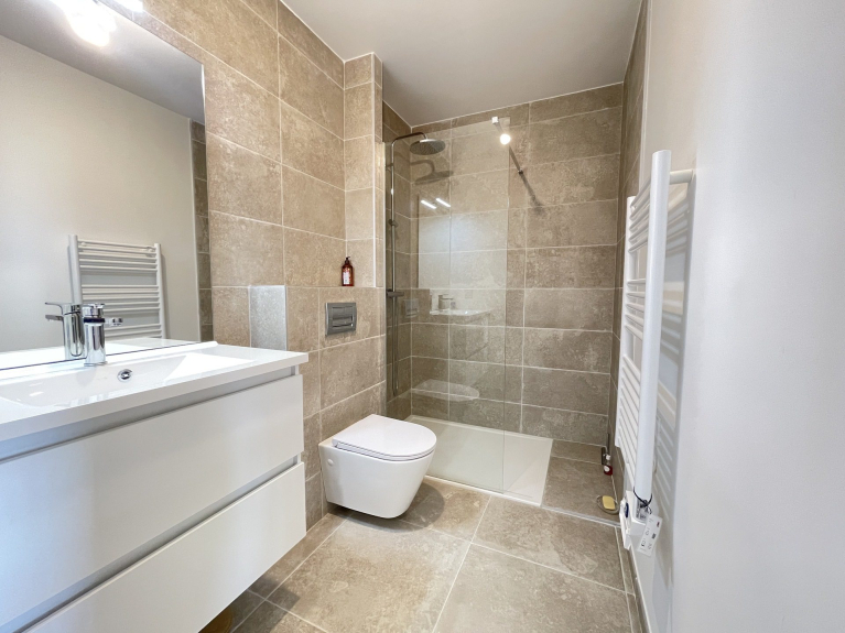 Ce niveau s'ouvre sur une grande terrasse exposée plein Sud, sans vis-à-vis.