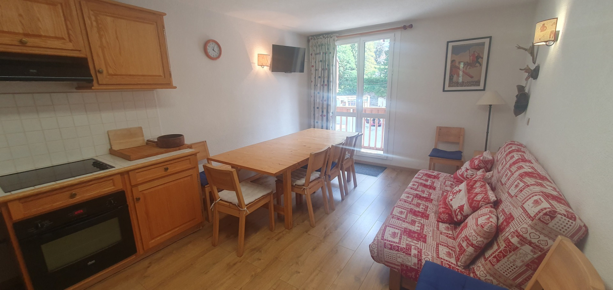 Appartement au 2ème étage avec ascenseur d'une petite résidence, idéalement située au coeur de la station, à 30 mètres de l'arrivée de la piste, du départ télécabine, les écoles de ski et les commerces.