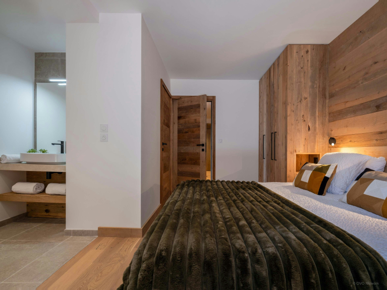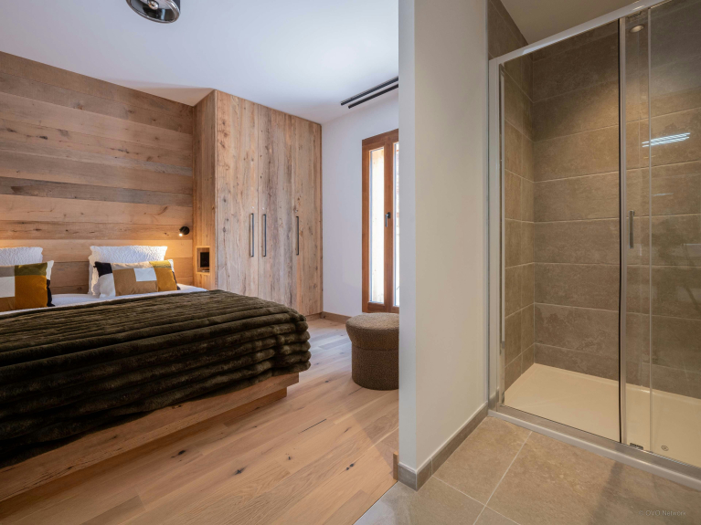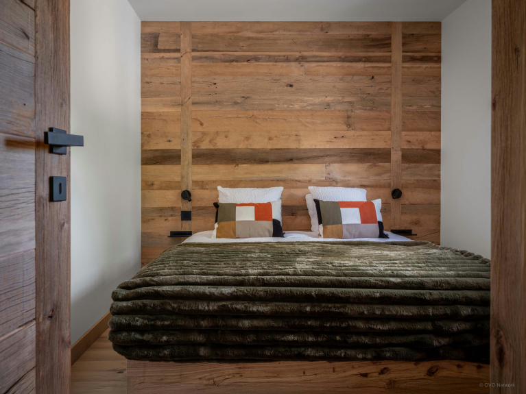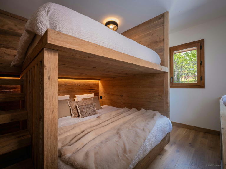 Parmi les trois chambres doubles, l’une dispose d’une salle de douche avec toilettes et d’un accès direct au plus grand balcon. Une autre chambre, pensée pour une famille, propose deux lits doubles superposés.