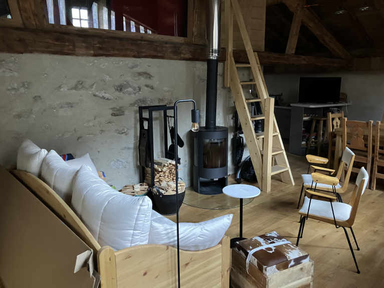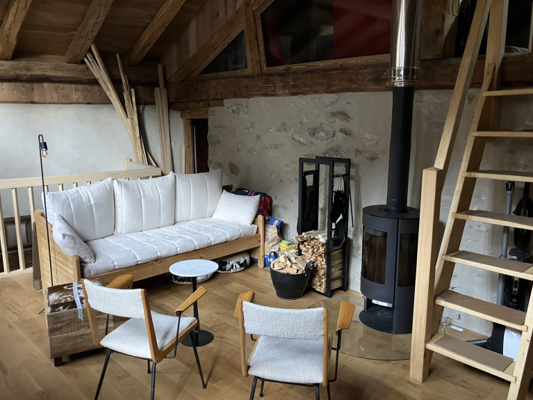 Le chalet est équipé d'un poêle à buche dans le séjour.