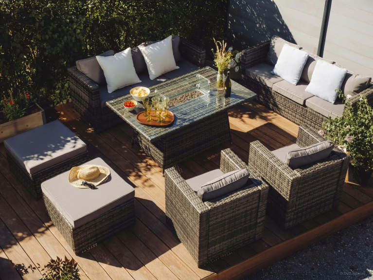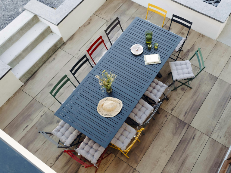 À l’étage supérieur, deux chambres doubles se partagent une salle de douche et des toilettes indépendantes. L’une de ces chambres comprend un bureau pour permettre le télétravail, l’autre profite d’une terrasse privative meublée de fauteuils et d’un canapé. Vous trouverez également un lave-linge et un sèche-linge.