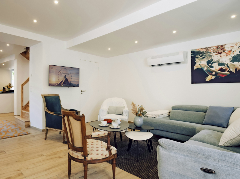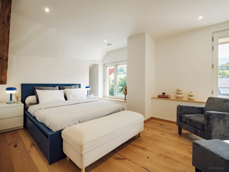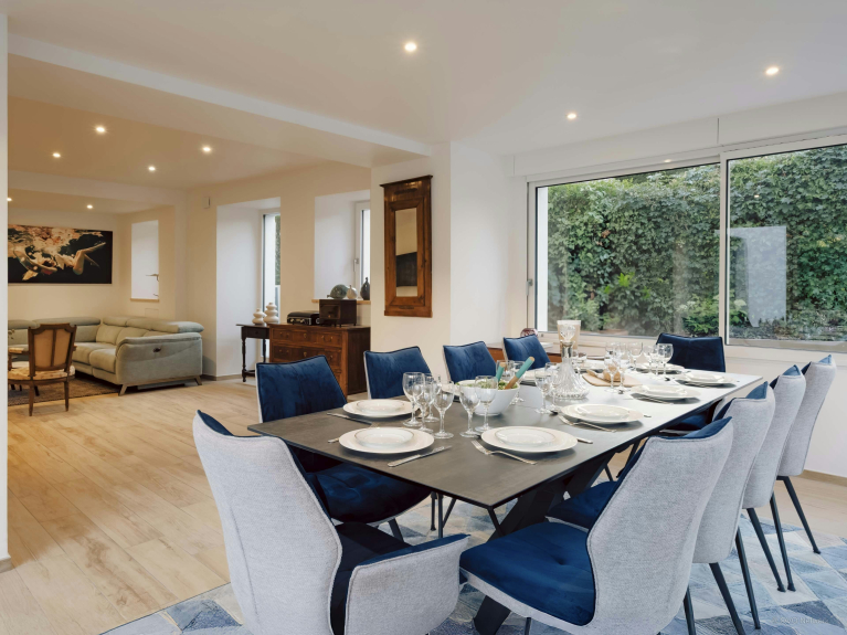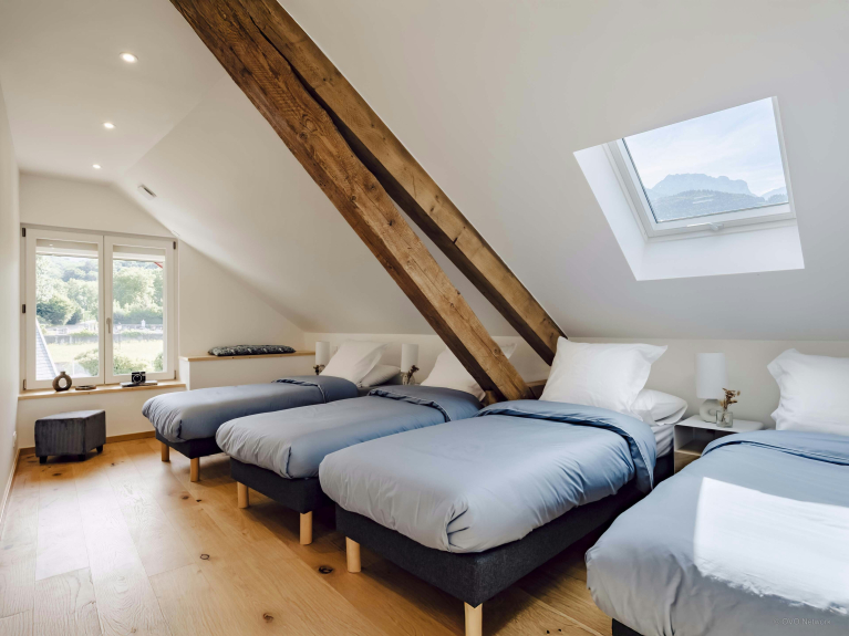 Nichée au cœur d’un village bordant le lac d’Annecy, la Villa Le Cep abrite cinq chambres et quatre salles de bains, dans une atmosphère lumineuse et conviviale.