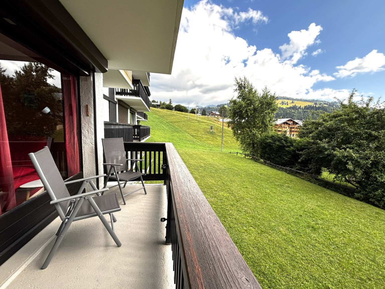 En été, la résidence se transforme en point de départ parfait pour découvrir les paysages époustouflants des Alpes du Nord. À seulement 400 mètres, vous trouverez des courts de tennis, une aire de jeux pour enfants, ainsi que de nombreux sentiers pour vos randonnées à pied ou en VTT. Le télésiège du Mont Rond, ouvert trois jours par semaine, vous emmène facilement vers les plus beaux panoramas sur le Mont Blanc et les massifs environnants.