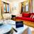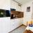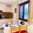 Cuisine ouverte équipée : 2 plaques électriques, micro-ondes, lave-vaisselle, réfrigérateur, bouilloire, grille-pain, machine à café