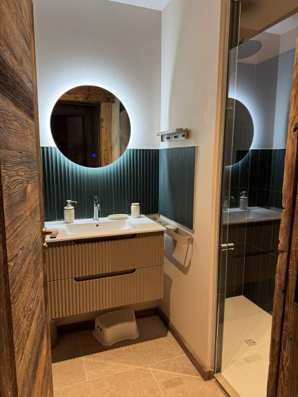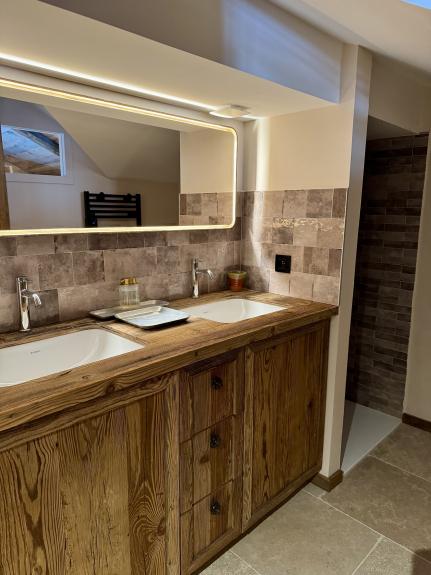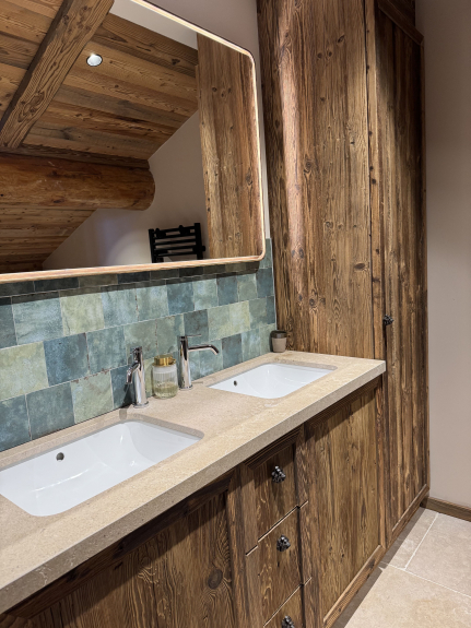 Le chalet Exalta est composés de 5 chambres, 5 salles d’eau dont une avec sauna, 4 wc à l’étage et 1 au rdv. Un vaste et chaleureux séjour et d’une cuisine intégrée toute équipée.