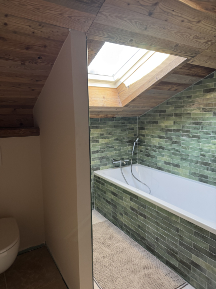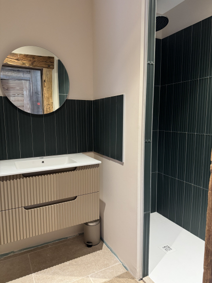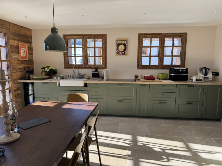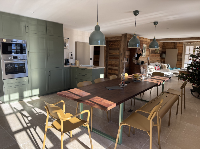 Les travaux de rénovation seront terminés en décembre, et le chalet sera meublé à ce moment-là. Les photos actuellement mises en ligne sont générées par IA : elles sont non contractuelles, mais donnent une idée fidèle du style et du rendu final souhaité.