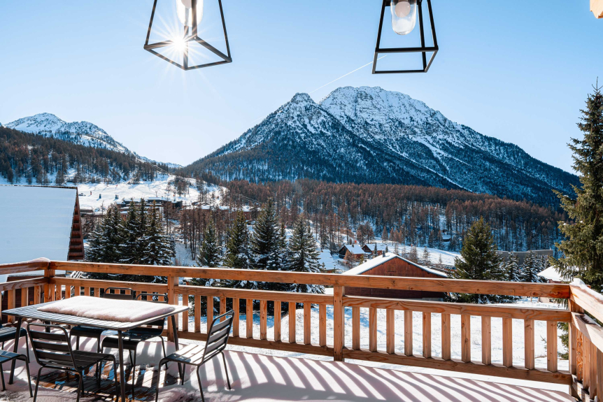 - Grande terrasse ensoleillée (20m²) plein Sud avec vue dégagée sur les Écrins et les pistes