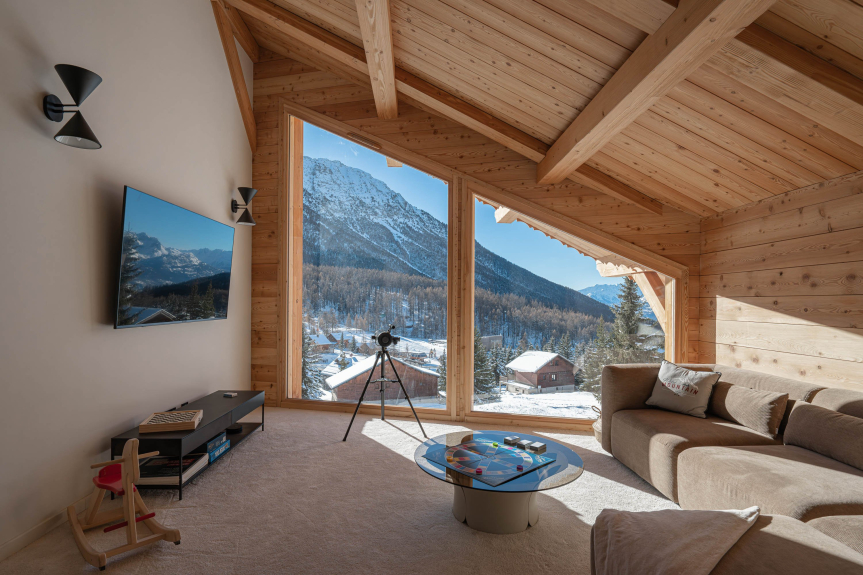 - Salle de jeux / coin lecture avec une superbe vue sur les Ecrins