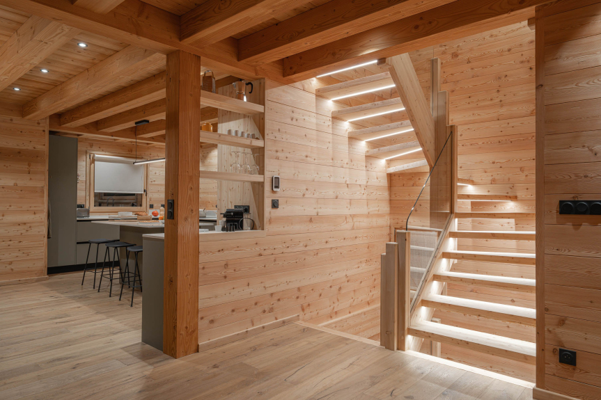 L’emplacement privilégié du chalet vous permet de garer votre voiture sur l’une des 3 places privatives (avec borne de recharge électrique), puis de tout faire à pied.