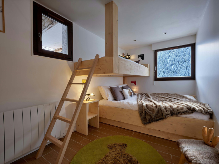 Les deux chambres du premier étage bénéficient elles aussi du panorama, tandis que celle du niveau inférieur est parfaitement adaptée à recevoir une famille, grâce à un lit parental, un lit simple superposé, et un lit gigogne.