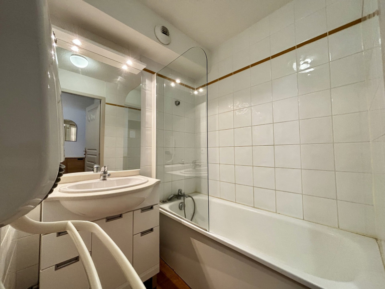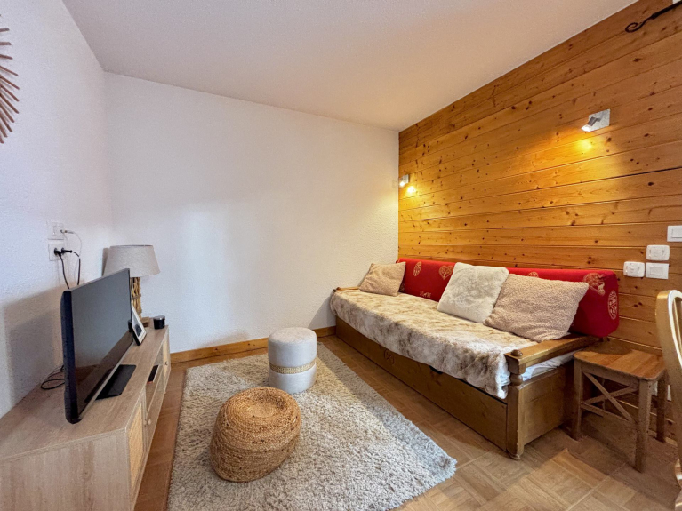NOTRE AVIS : Appartement confortable et idéalement situé au pied des pistes, avec une grande terrasse ensoleillée et un accès à la piscine intérieure : un choix parfait pour un séjour pratique et agréable à la montagne.