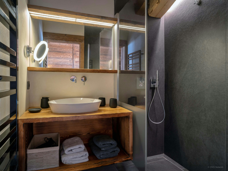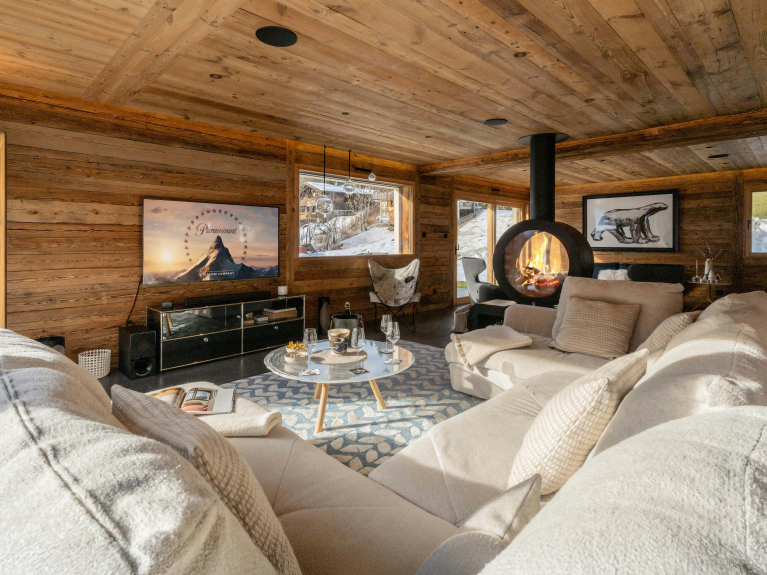Pensé pour simplifier le quotidien, le chalet dispose également de son local à skis avec sèche-chaussures chauffant, de sa buanderie et de solutions de stationnement pratiques.
