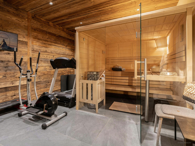 Le bien-être occupe une place centrale au Chalet Anthocyane. Son sauna et sa salle de sport permettent de prendre soin de soi après une journée active.