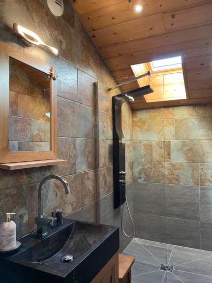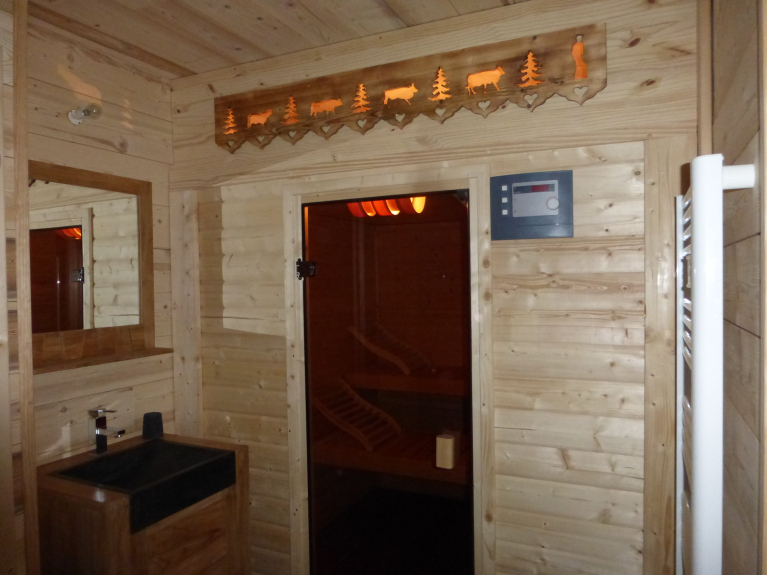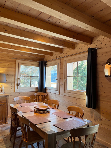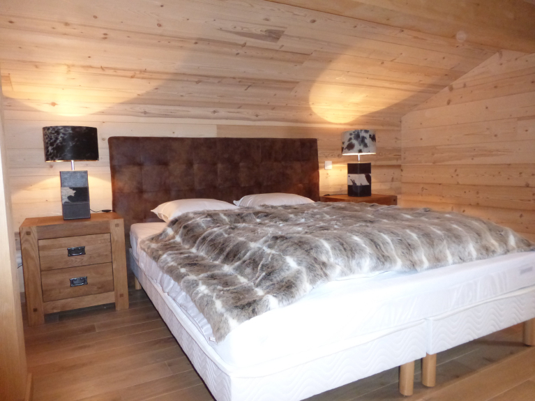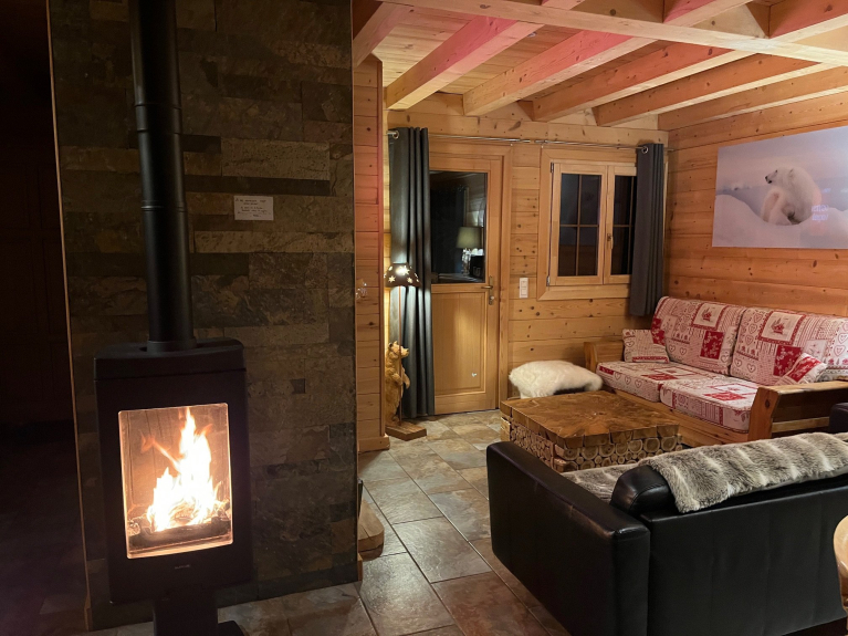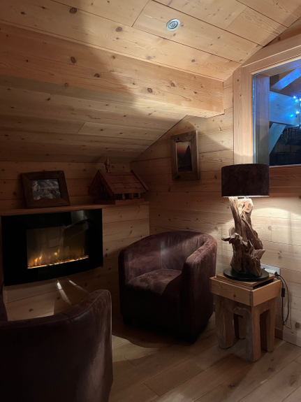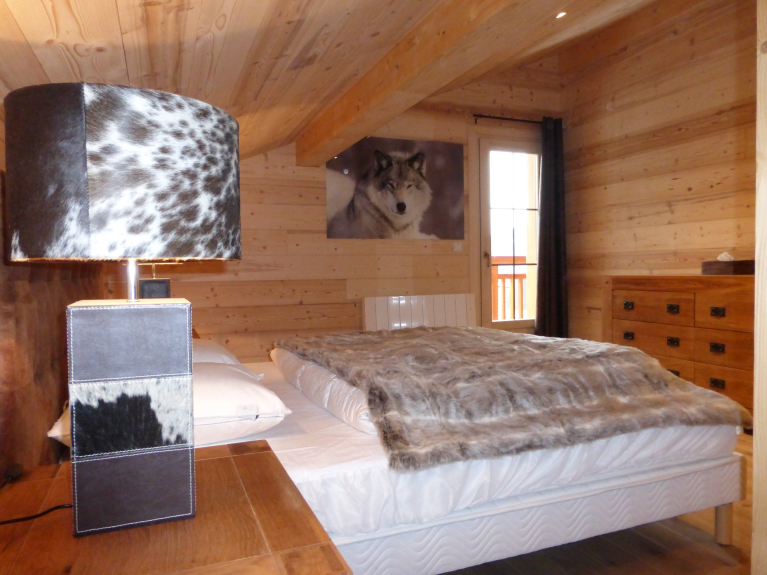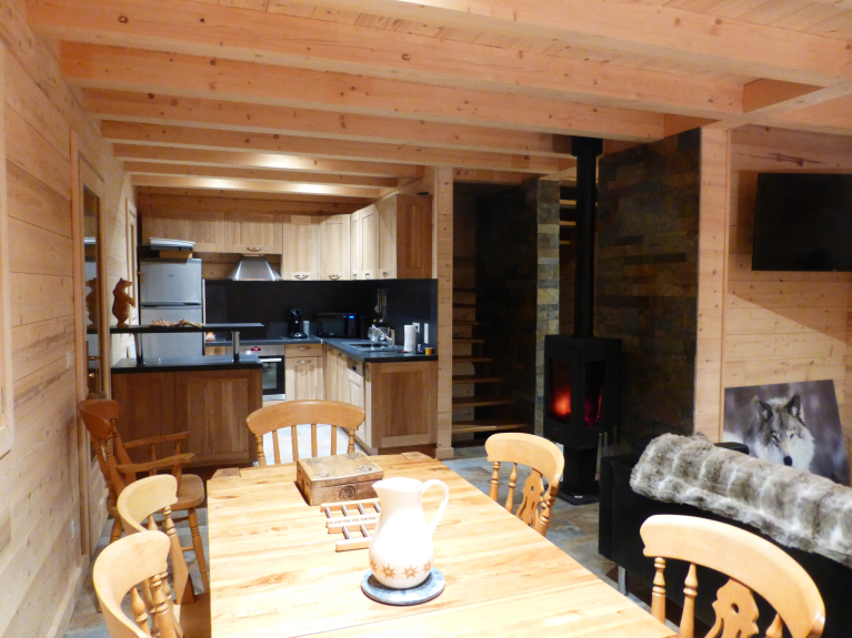 Entièrement en bois et pierres avec plusieurs balcons, prestations haut de gamme et décorations chaleureuse et sophistiquée. Possédant 4 chambres à thème (3 chambres avec lit 160 X 200 et une chambre avec 2 lits de 80 X 200). 3 salles de bains avec douches à l'italienne. 3 WC indépendants. Mezzanine avec coin lecture; Buanderie avec lave-linge, sèche-linge et centrale vapeur. Poêle à bois (bois compris). Sauna, Wifi (fibre), 2 TV (dans le salon et une autre dans une chambre).
