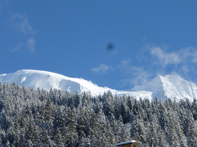 Terrasse de 20m² exposé plein sud et donnant sur la chaîne du Mont Blanc dont les Dômes de Miage.