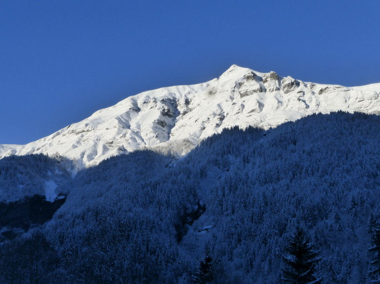 Vue directe sur le Mont Jolie, la chaîne des Fiz.