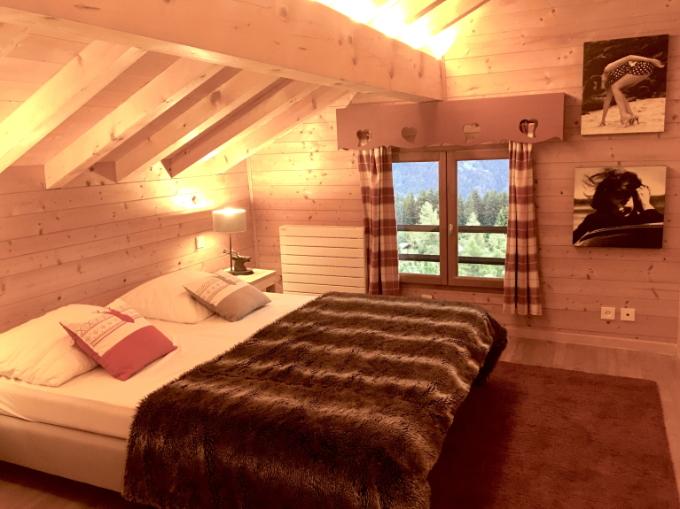 Le chalet est composé d'espaces pensés pour la vie de groupe, tout en préservant l’intimité de chacun. Les chambres offrent un cocon douillet pour des nuits reposantes, dans le calme apaisant de la montagne.