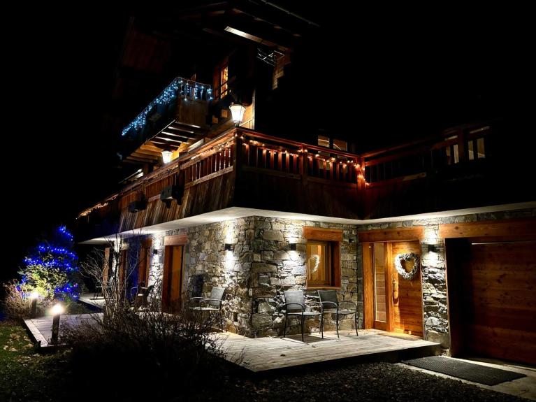 Le chalet est entouré de balcons et de terrasses qui vous permettront de profiter d’un après ski / raquettes/randonnée bien agréable en fin de journée et de contempler la chaine des Aravis au soleil couchant.