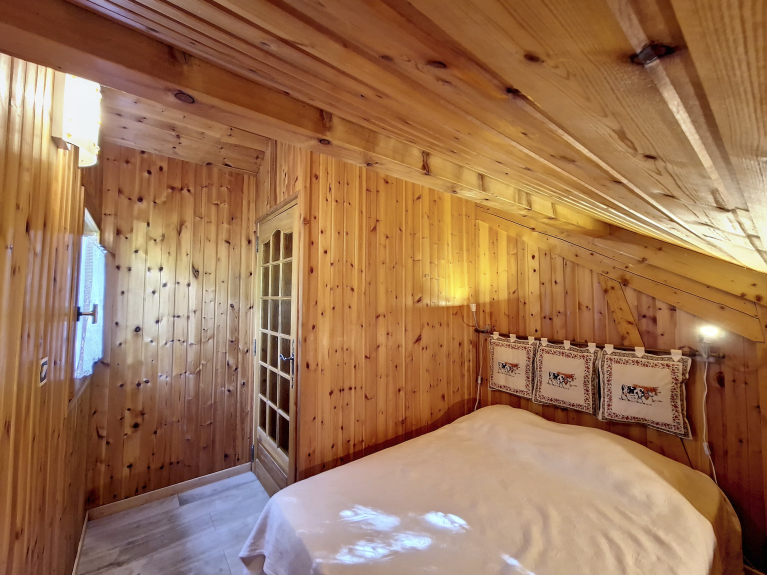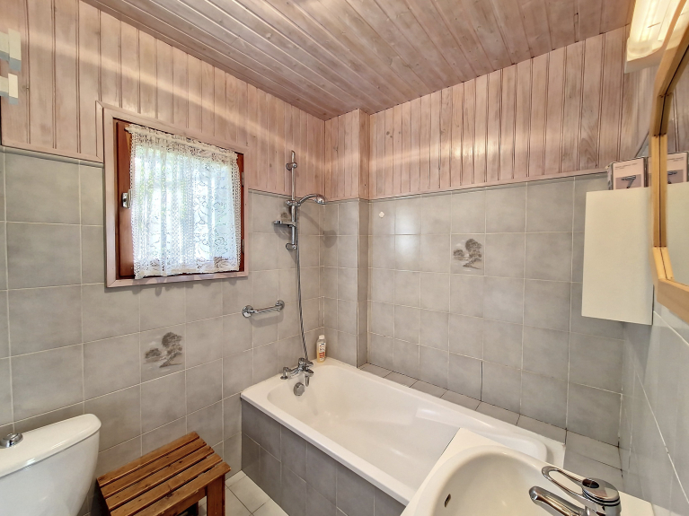 CHAL LES BANS - Chalet gelegen in een rustige woonwijk in Vallouise La Casse, 2 slaapkamers + mezzanine, een badkamer met bad, een douchekamer.