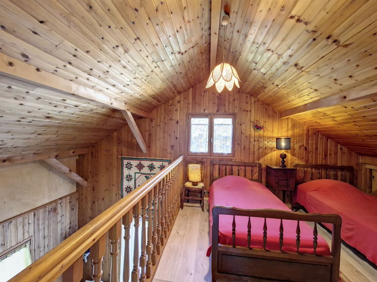 Mezzanine : 2 eenpersoonsbedden 90x190 met dekens