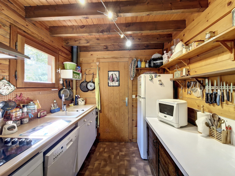Uitrusting : Flatscreen TV, DVD-speler, oven, vaatwasser, wasmachine, 4-pits kookplaat, waterkoker, Nespresso koffiezetapparaat, broodrooster, filterkoffiezetapparaat, magnetron, koelkast met vriesvak, radio CD-speler, keukenmachine, fondue-apparaat, haardroger, elektrische mixer, strijkijzer, elektrische frituurpan, open haard, terrasmeubilair met parasol en barbecue.