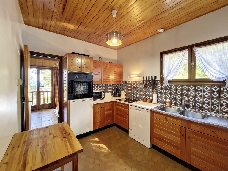 Apparatuur : 2 koelkasten, elektrische kookplaat 4 pitten, vaatwasser, wasmachine, televisie, oven, koffiezetapparaat, broodrooster, magnetron, stofzuiger, raclette machine, pannenkoek machine.