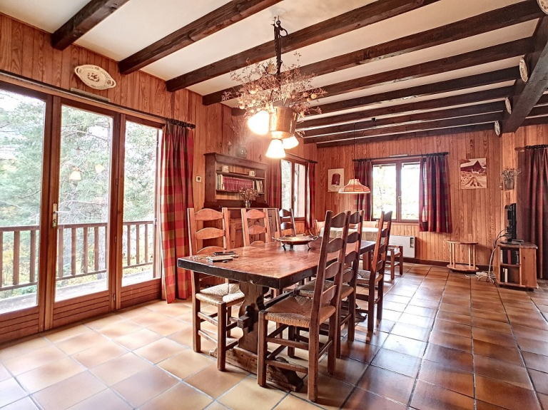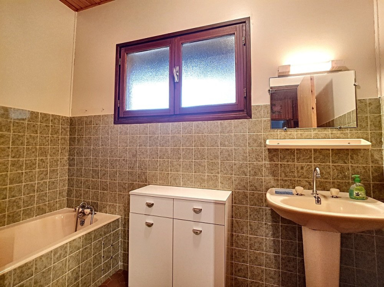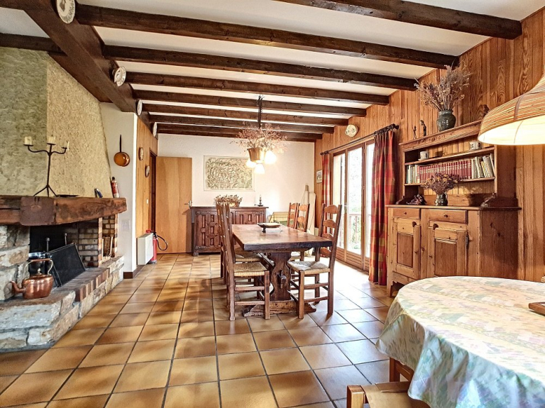 Grote woonkamer met open haard, 5 slaapkamers, 1 badkamer met ligbad, 1 douchekamer, 3 toiletten, garage.