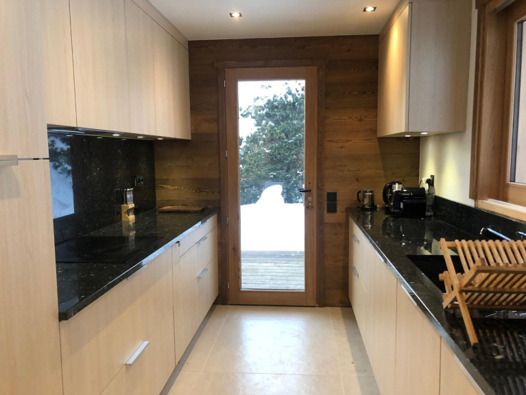 - Ingang bij de garage (2 plaatsen) met schoenendroger, verwarmde kast en ski rek