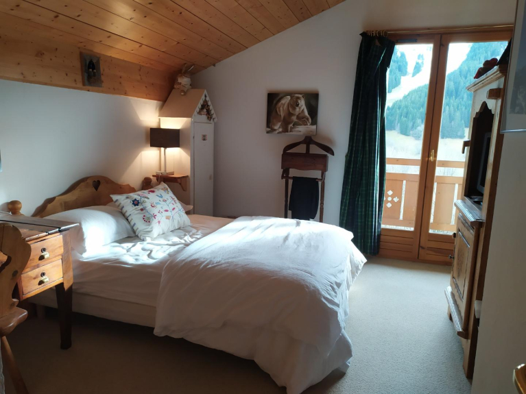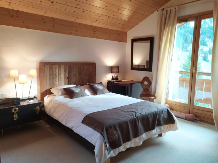 Op het zuiden gelegen chalet met een prachtig uitzicht op het Aravisgebergte. Gelegen op 2,7 km van het dorpscentrum (op een eenrichtingsweg tijdens het winterseizoen), op 500 m van het begin van de skipistes van Balme. Bushalte op 20 m (5min om met de bus naar Balme te komen).